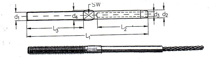 | SKU | Průměr lana | d1 | d2 | d3 | d4 | L1 | L2 | L3 | SW |