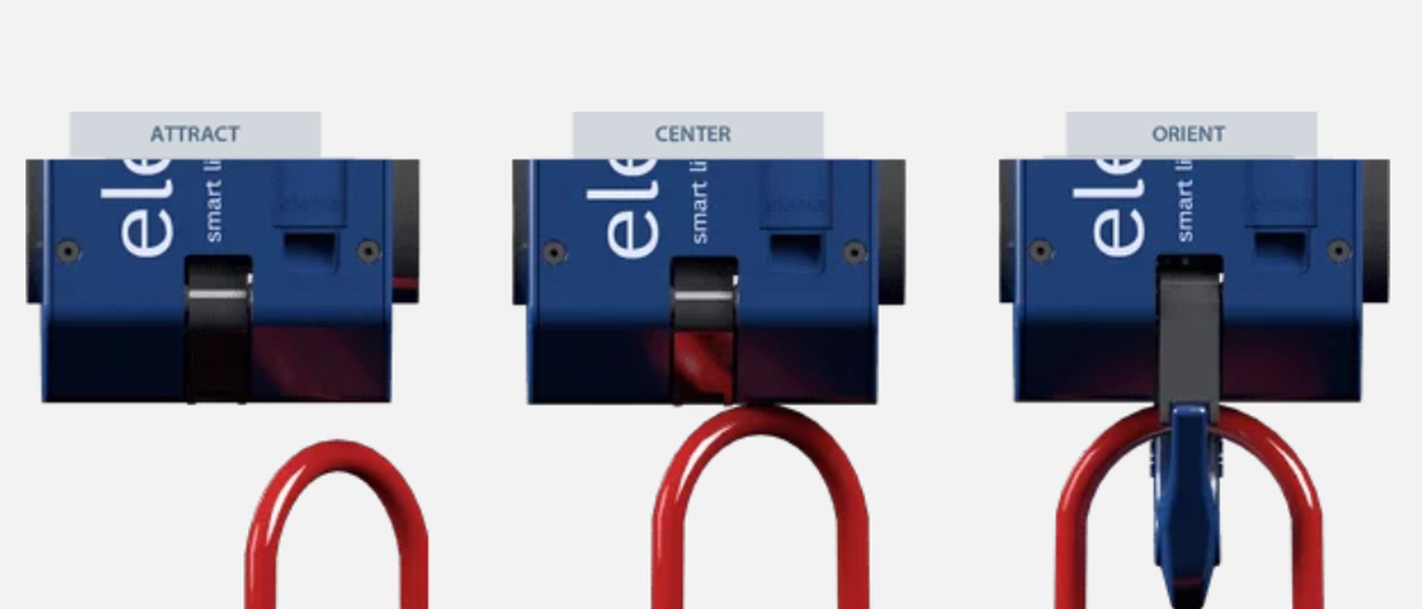 Jeřábové háky ELEBIA jsou vybaveny unikátním magnetickým systémem, který tvoří 32 neodymových permanentních magnetů. Tyto magnety jsou umístěny v přesné konfiguraci, která generuje orientované magnetické pole se 3 funkcemi: přitahování, centrování a orientace hlavního článku. Tento základní modul je přítomen ve všech dálkově ovládaných hácích ELEBIA a umožňuje dálkové uchycení břemen.