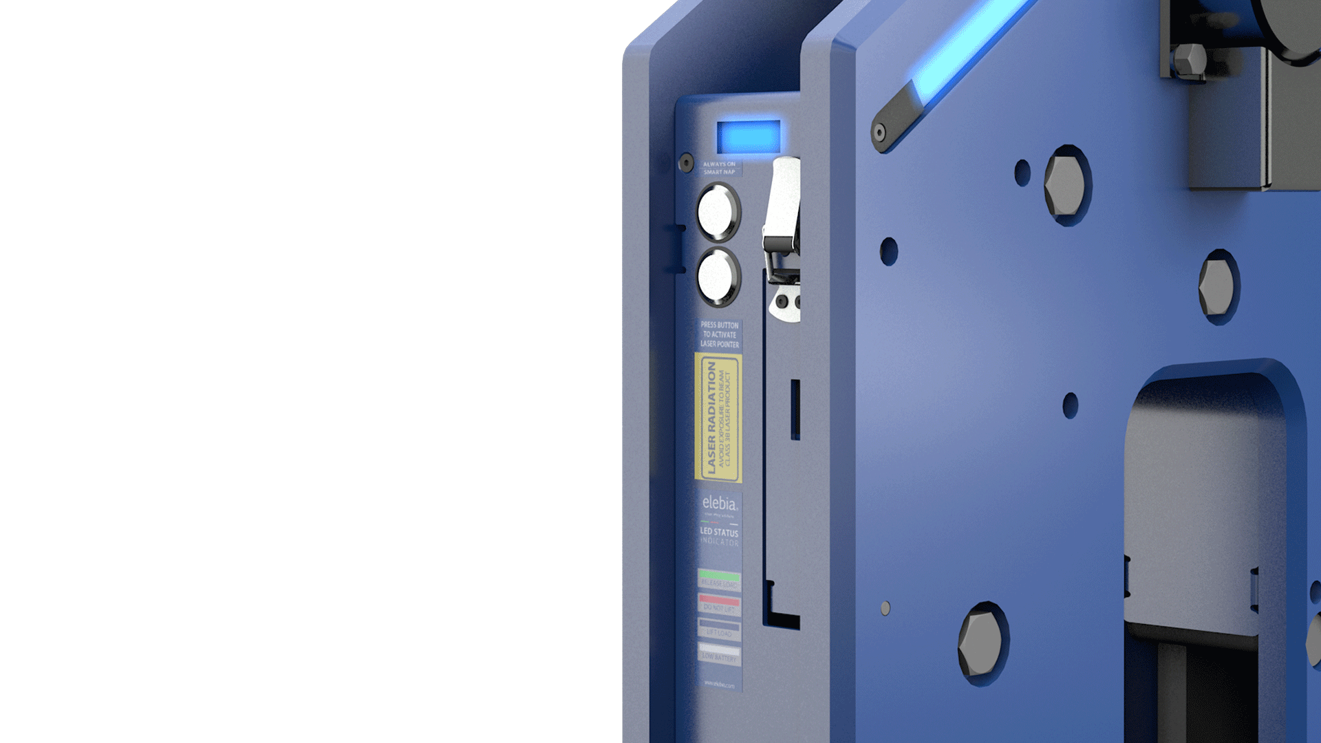 2. Systém e-status (LED barometr) Hák je vybaven velkým, vysoce svítivým LED indikátorem, který jasně signalizuje aktuální stav všem v okolí:
