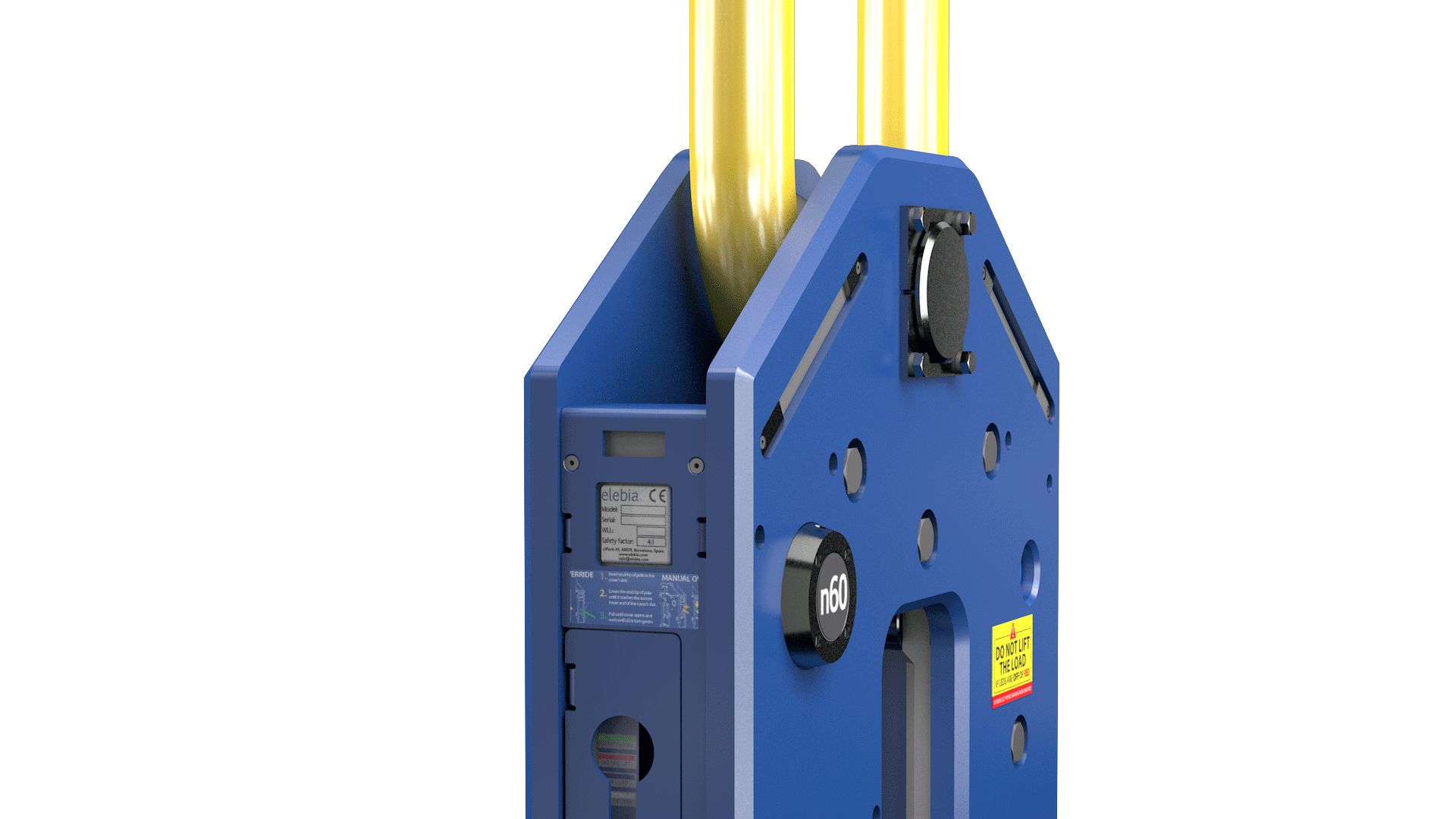 1. Magnetické navádění a orientace I při své robustnosti využívá NEO60 pokročilý magnetický systém ELEBIA. Magnet přitáhne a vycentruje zvedací oko nebo řetěz, což umožňuje jeřábníkovi pracovat samostatně a s milimetrovou přesností, i když je břemeno desítky metrů pod ním.