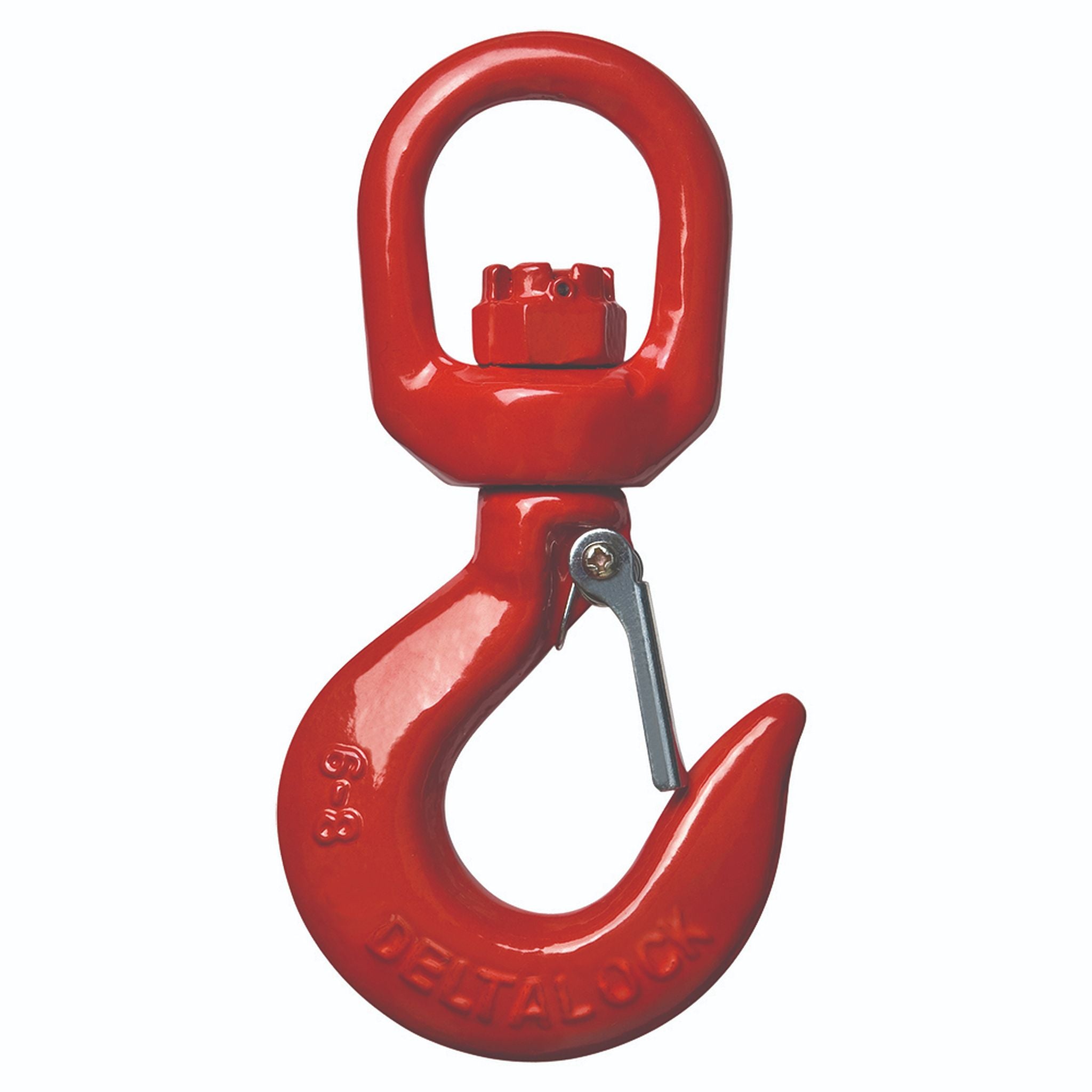 DELTALOCK třída pevnosti 80 - otočný hák s litou západkou, s maticí a třmenem červený lak.