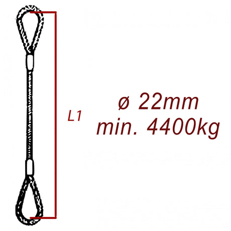 Ocelové vázací lano, oko-oko, průměr 22mm jednopramenné, zalisované, nosnost min 4400kg
