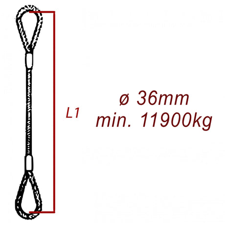 Ocelové vázací lano, oko-oko, průměr 36mm jednopramenné, zalisované, nosnost min 11900kg
