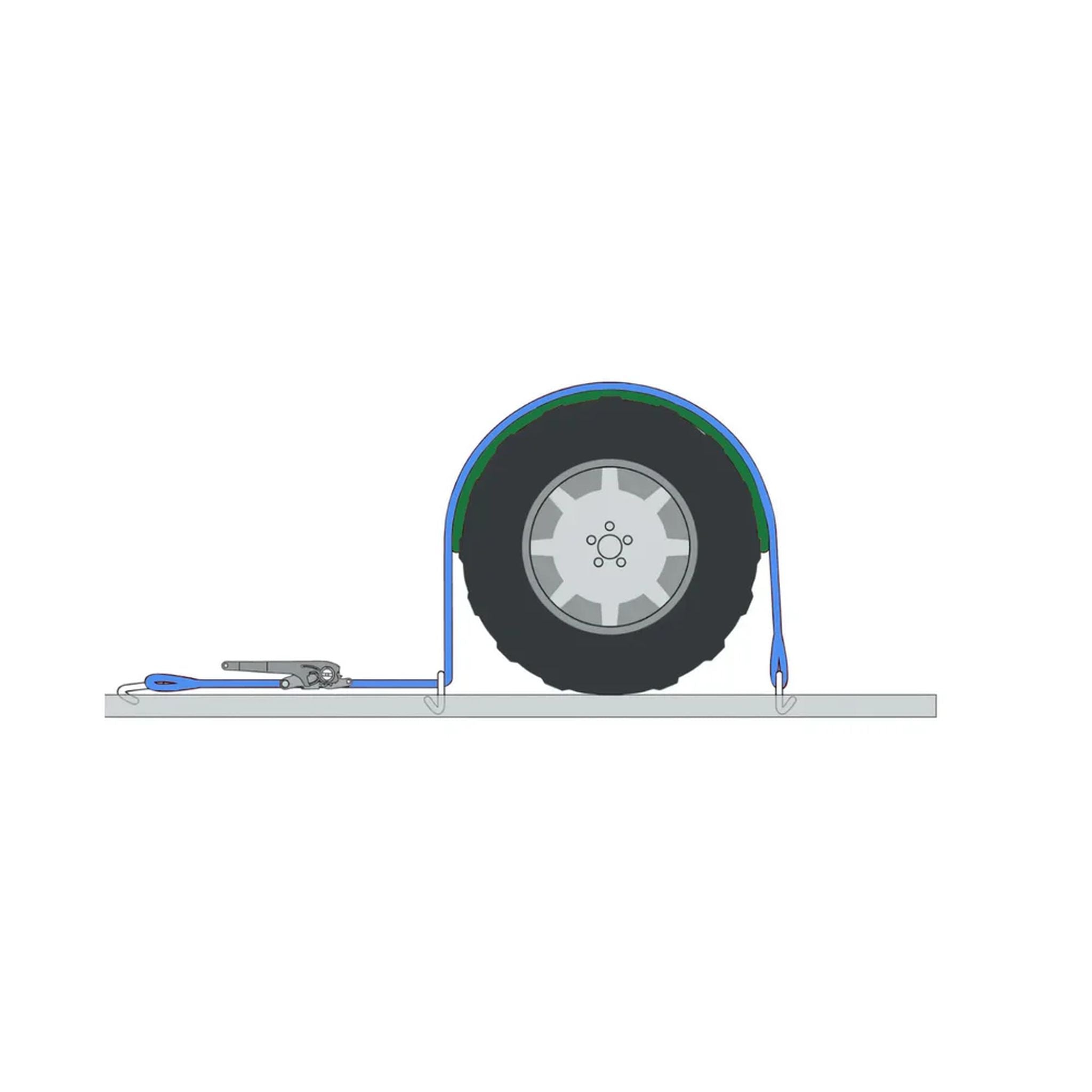 - Podle normy VDI 2700 8.1 se pás při zajišťování vozidla nesmí dotýkat pneumatiky. Proto je nutné použít pryžovou nebo pryžovou ochranu!