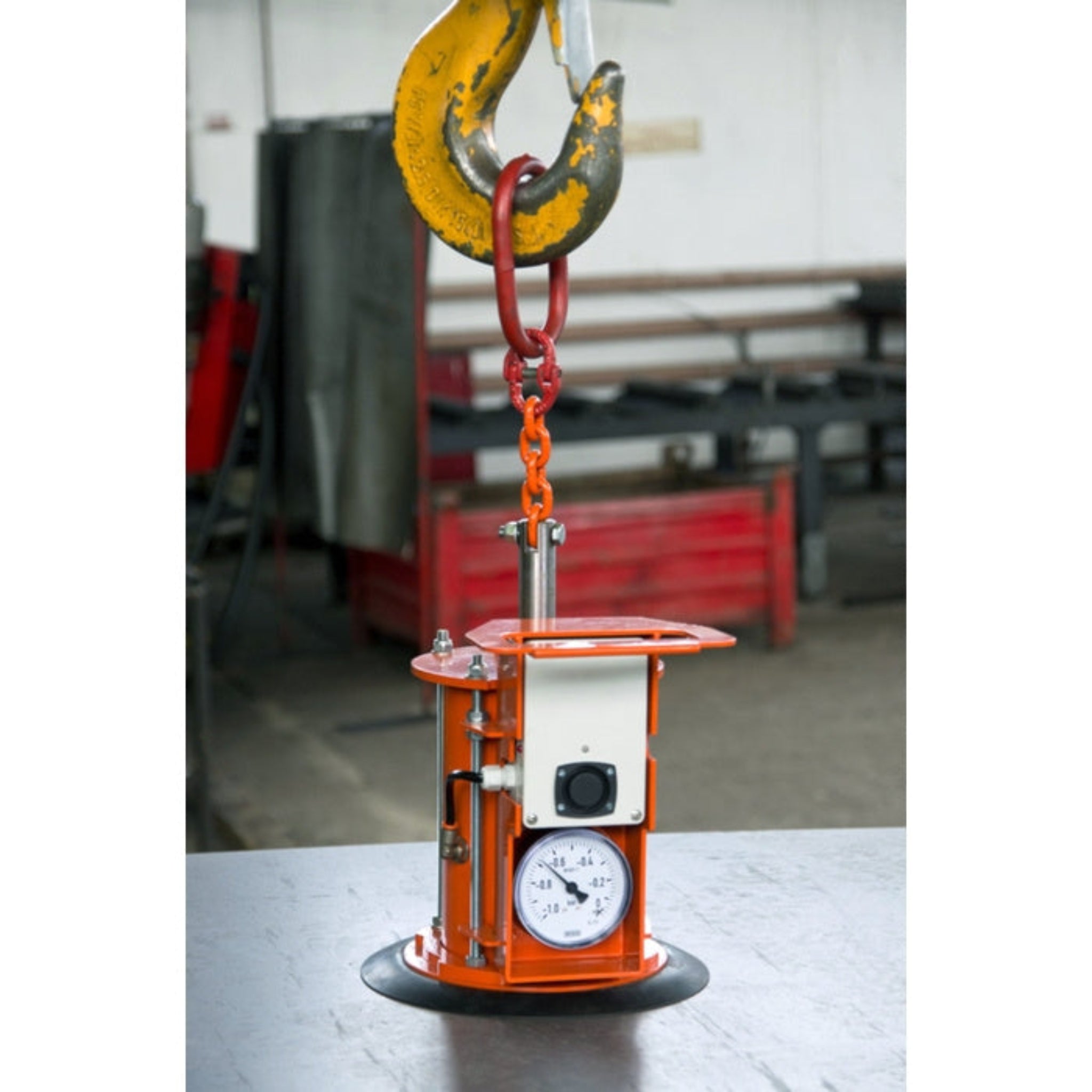 Vakuové manipulátory VMS jsou vybaveny manometrem a výstražným zařízením, které se aktivuje při poklesu podtlaku o 20%, kdy aktivuje alarm (akustická a vizuální signalizace) upozorňující obsluhu na okamžité odložení břemene.