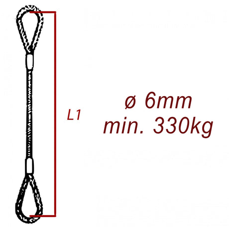 Ocelové vázací lano, oko-oko, průměr 6mm jednopramenné, zalisované, nosnost min 330kg