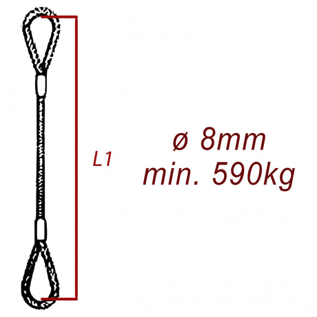 Ocelové vázací lano, oko-oko, průměr 8mm jednopramenné, zalisované, nosnost min 590kg