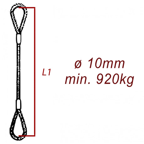Ocelové vázací lano, oko-oko, průměr 10mm jednopramenné, zalisované, nosnost min 920kg